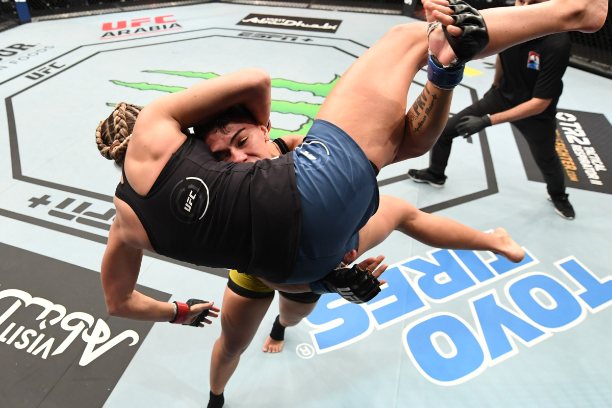 Ex-campeã peso-palha (52 kg) do UFC, Jéssica ‘Bate-Estaca’ estreou na divisão peso-mosca (57 kg) do evento neste sábado (17), em Abu Dhabi (EAU). E diante de Katlyn Chookagian, número um do ranking, sua apresentação foi coroada com um nocaute logo nos primeiros cinco minutos de ação no octógono e um pedido de luta pelo cinturão.