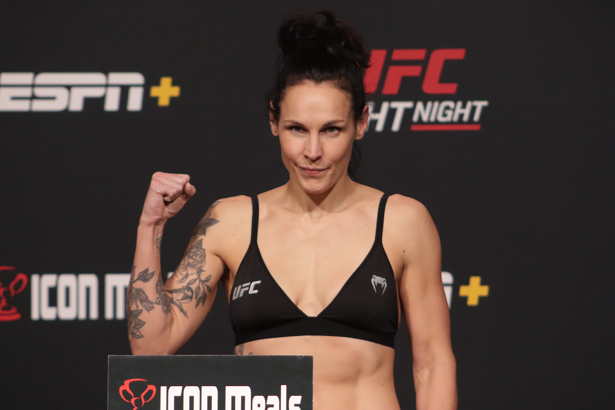 LAS VEGAS, NV - FEBRUARY 17: UFC fighter Lina Länsberg poses on the scale during the UFC Vegas 69 weigh ins at UFC Apex on February 17, 2023, in Las Vegas, Nevada, USA. (Photo by Diego Ribas/PxImages)