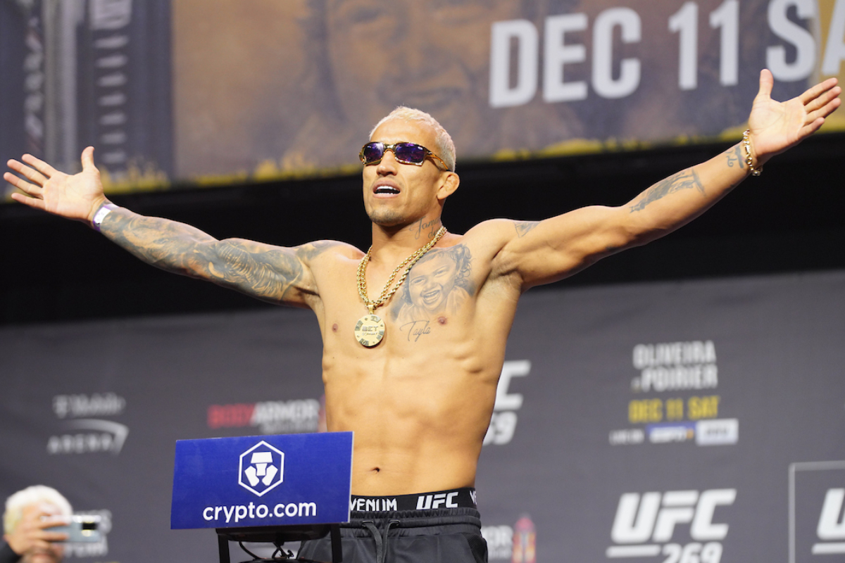 Charles Oliveira, de 32 anos, vive sua melhor fase no MMA. Conhecido no esporte pelo jiu-jitsu de alto nível, o brasileiro mostrou que sua trocação também representa uma ameaça aos oponentes. Atualmente, ‘Do Bronx’ é o campeão do peso-leve do UFC, é o dono da quinta posição no ranking peso-por-peso da companhia e possui dez triunfos seguidos, sendo seis por finalização e três por nocaute. Além disso, o paulista é o recordista de finalizações na história da companhia (15 vezes), é o maior colecionador de bônus (18) e o lutador que mais venceu pela via rápida (18). Seu cartel profissional é composto por 32 vitórias, sendo 29 pela via rápida, oito derrotas e um ‘no contest’ (luta sem resultado).