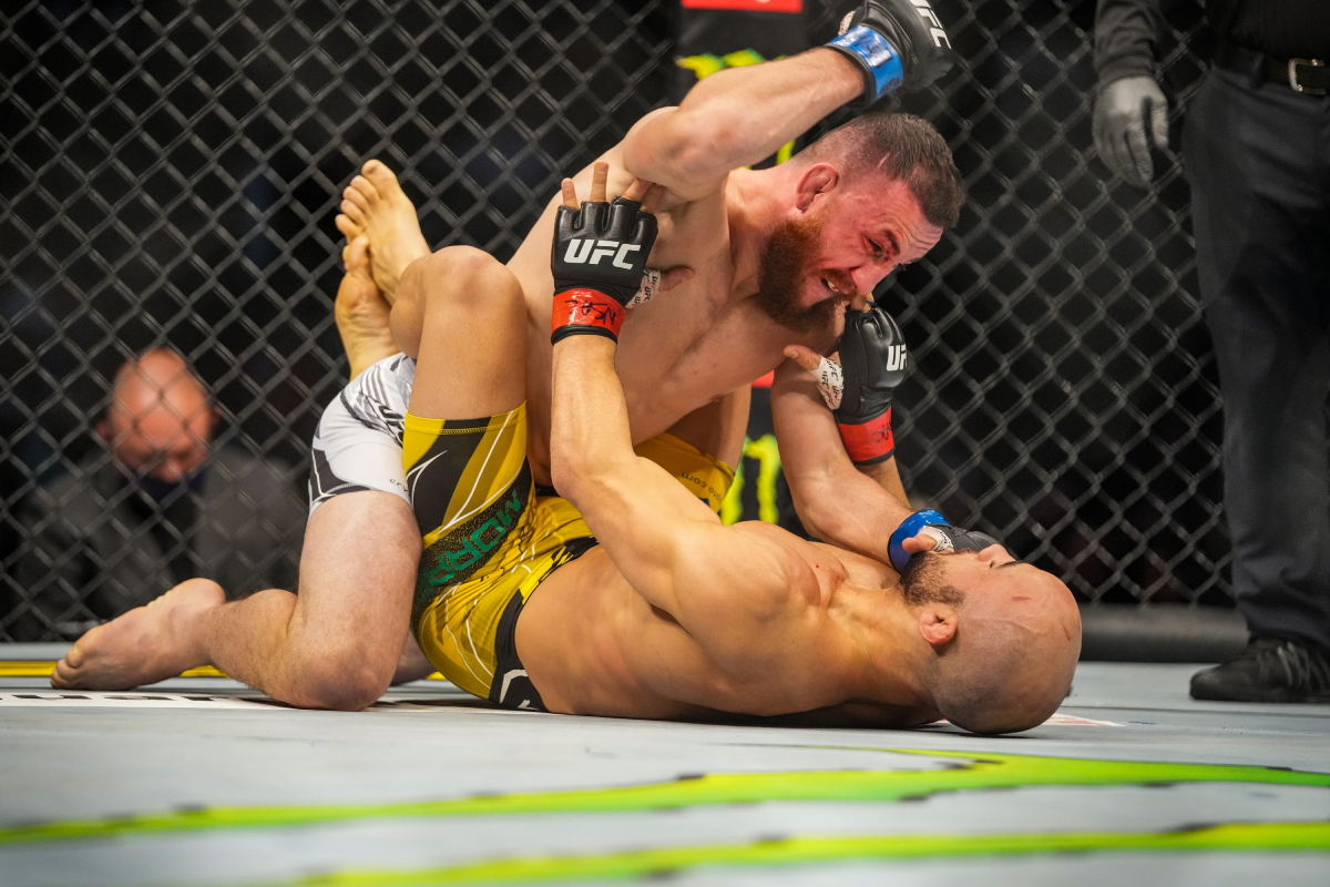 Apesar de conectar um knockdown no início do confronto, Marlon cansou de tanto bater em um rival que se mostrou imparável. Ainda no primeiro round, o atleta da Geórgia já havia revertido o ritmo da disputa e pressionava com golpes no chão, justamente onde a luta acabou no assalto seguinte.