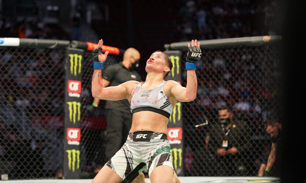 Priscila ‘Pedrita’ fez a alegria do público presente no UFC 262. No evento realizado neste sábado (15), na cidade de Houston, no Texas (EUA), a brasileira confirmou o bom momento na organização ao nocautear Gina Mazany no segundo round. É bem verdade que, para isso acontecer, a carioca sofreu, mas mostrou garra e poder para alcançar o maior triunfo de sua carreira, o segundo seguido na empresa.