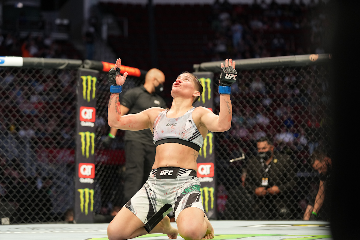 Priscila ‘Pedrita’ fez a alegria do público presente no UFC 262. No evento realizado neste sábado (15), na cidade de Houston, no Texas (EUA), a brasileira confirmou o bom momento na organização ao nocautear Gina Mazany no segundo round. É bem verdade que, para isso acontecer, a carioca sofreu, mas mostrou garra e poder para alcançar o maior triunfo de sua carreira, o segundo seguido na empresa.