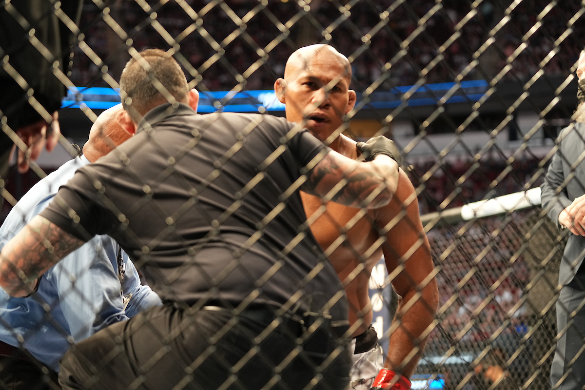 O UFC 262 pode ter representado o fim da trajetória de Ronaldo ‘Jacaré’ no UFC. Na atração realizada neste sábado (15), na cidade de Houston, no Texas (EUA), o veterano do peso-médio (84 kg) não só perdeu para André ‘Sergipano’, promessa da categoria, como também foi finalizado pela primeira vez em sua carreira. Após o surpreendente revés, o faixa-preta de jiu-jitsu, imediatamente, saiu do octógono para receber tratamento médico.