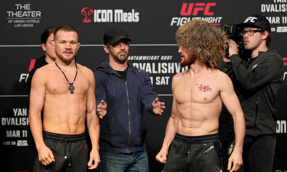 Números dois e três do ranking peso-galo do Ultimate, respectivamente, Petr Yan e Merab Dvalishvili medirão forças na luta principal do UFC Las Vegas neste sábado de olho em um futuro ‘title shot’. O russo, ex-campeão da categoria, vem de duas derrotas seguidas, uma em disputa de cinturão contra Aljamain Sterling e outra polêmica para Sean O’Malley, em outubro do ano passado. Já o georgiano ostenta uma invencibilidade de oito combates na liga, com um triunfo sobre José Aldo como sua mais recente conquista.