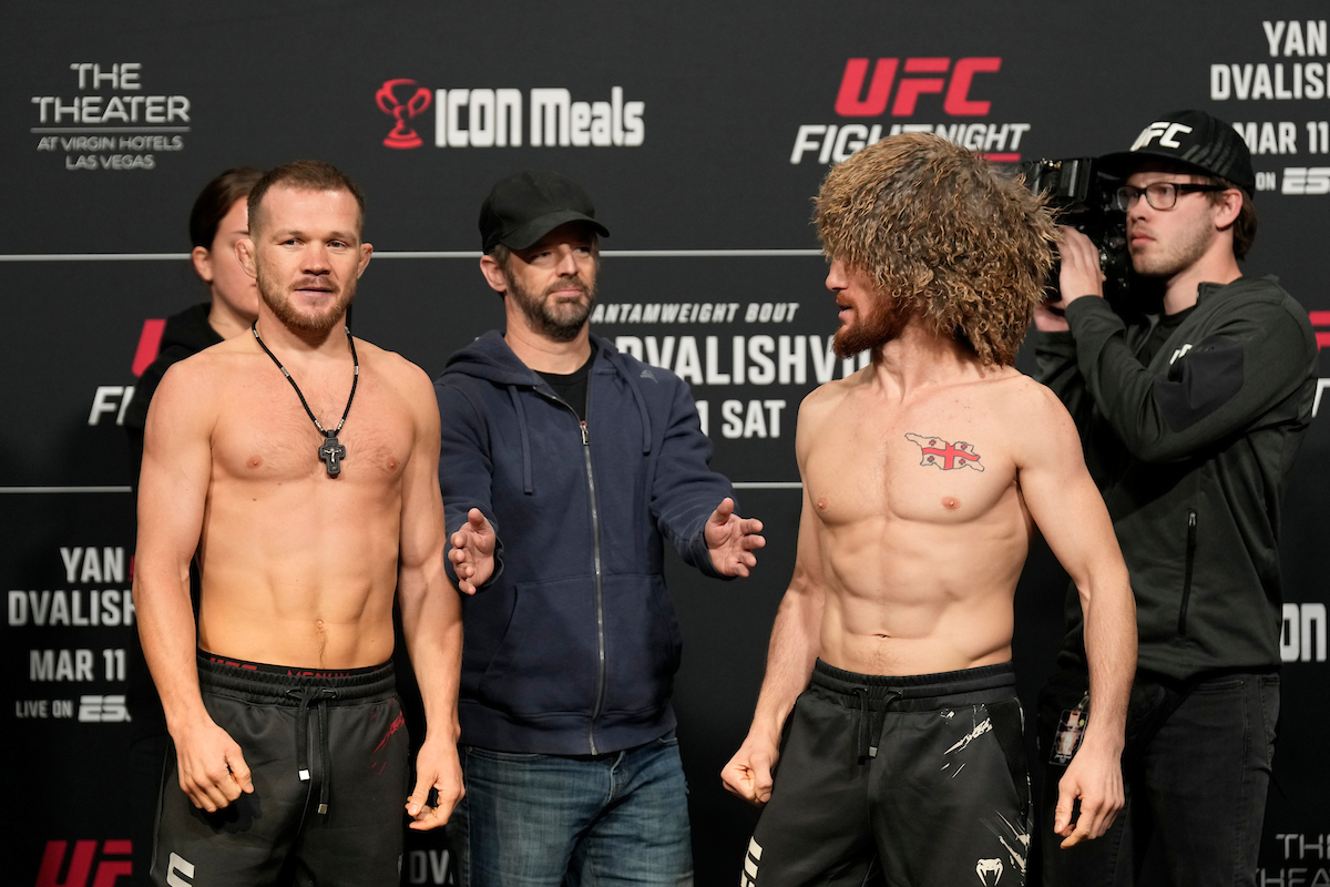 Números dois e três do ranking peso-galo do Ultimate, respectivamente, Petr Yan e Merab Dvalishvili medirão forças na luta principal do UFC Las Vegas neste sábado de olho em um futuro ‘title shot’. O russo, ex-campeão da categoria, vem de duas derrotas seguidas, uma em disputa de cinturão contra Aljamain Sterling e outra polêmica para Sean O’Malley, em outubro do ano passado. Já o georgiano ostenta uma invencibilidade de oito combates na liga, com um triunfo sobre José Aldo como sua mais recente conquista.