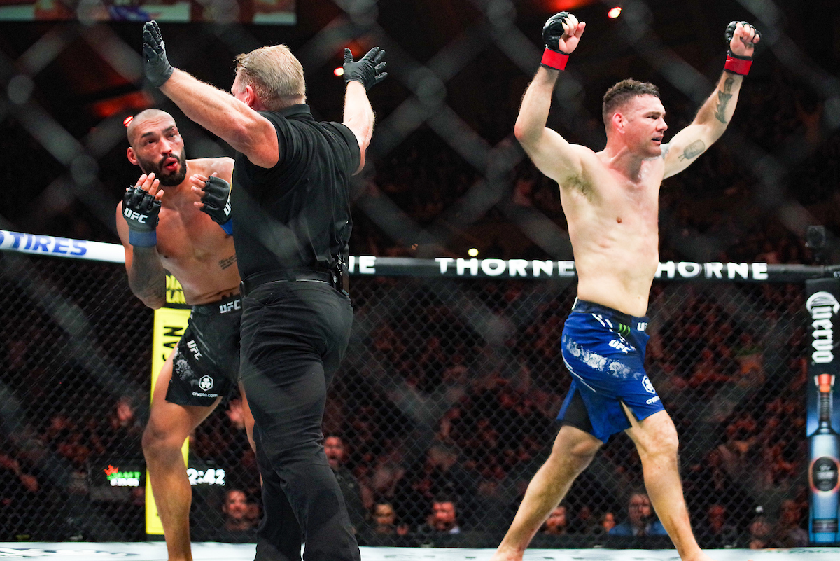Após a revisão do ‘VAR’, o veterano foi mantido como o vencedor, mas o triunfo – então via nocaute técnico – foi transformado em decisão dos juízes. Durante a coletiva de imprensa pós-show, Weidman, inclusive, destacou que também teria sido acertado no olho por Blindado durante o confronto, mas que se manteve de pé, ativo no combate.
