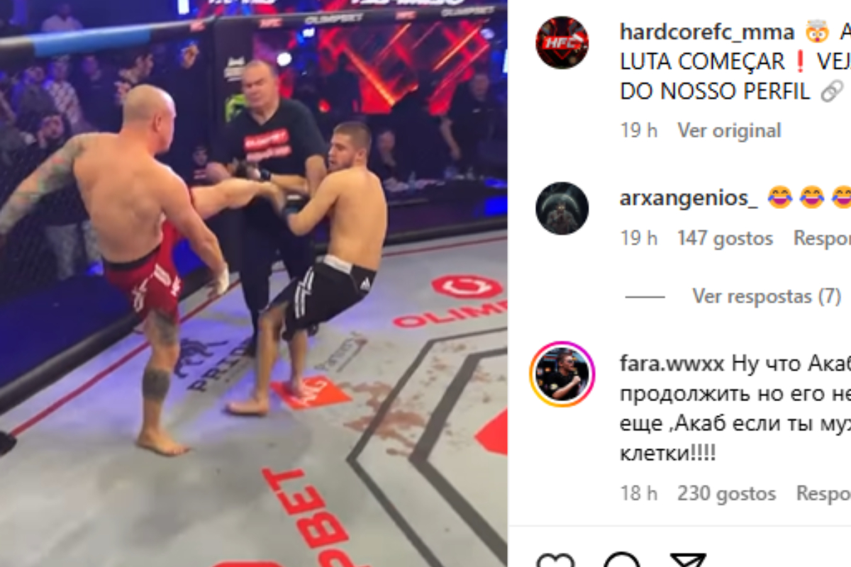 Uma cena para lá de inusitada foi protagonizada na última quinta-feira (19), em Moscou (RUS), durante uma edição do evento de MMA ‘Hardcore Fighting Championship’. Isso porque dois lutadores escalados para o card entraram em rota de colisão antes mesmo da hora programada. Durante a introdução do combate feita pelo ‘announcer’ do show, com ambos já no octógono, Artur Kulinsky partiu para cima de Farid Yadullaev e iniciou uma confusão generalizada. A briga fez com que o confronto fosse cancelado (veja abaixo ou clique aqui).