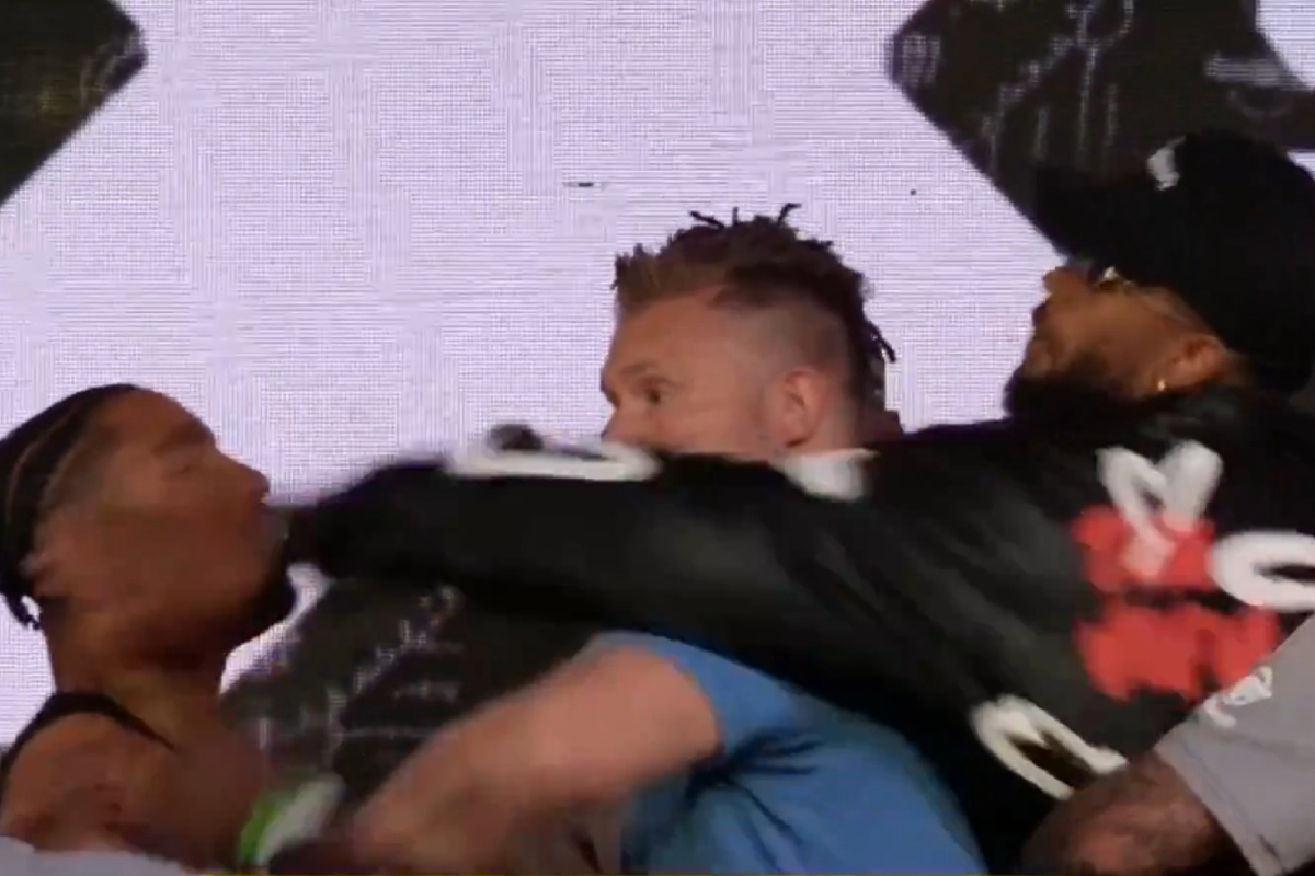 A coletiva de imprensa anterior ao evento ‘MF & DAZN: X Series 17’, realizada nesta quinta-feira (29), terminou mal. Tudo porque Gabriel Silva, filho de Anderson Silva, resolveu antecipar a luta de boxe contra Anthony Taylor, dando um tapa na cara do rival durante a encarada entre os dois. Os rivais vão se enfrentar no ringue neste sábado (31), na Irlanda.