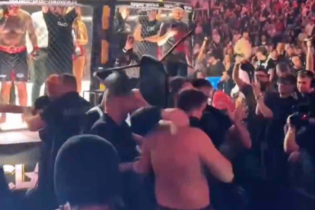 A temporada 2026 apenas começou, mas o prêmio de momento mais caótico do ano já tem um forte candidato. No último sábado (7), na República Tcheca, um evento chamado ‘Clash MMA’ terminou em pancadaria generalizada com a participação do público presente, após Pavol Vasko, conhecido como ‘Pali Hari’, aplicar um golpe ilegal à la Mike Tyson em Vaclav Mikulasek, apelidado de ‘Baba Jaga’, na luta principal do show.