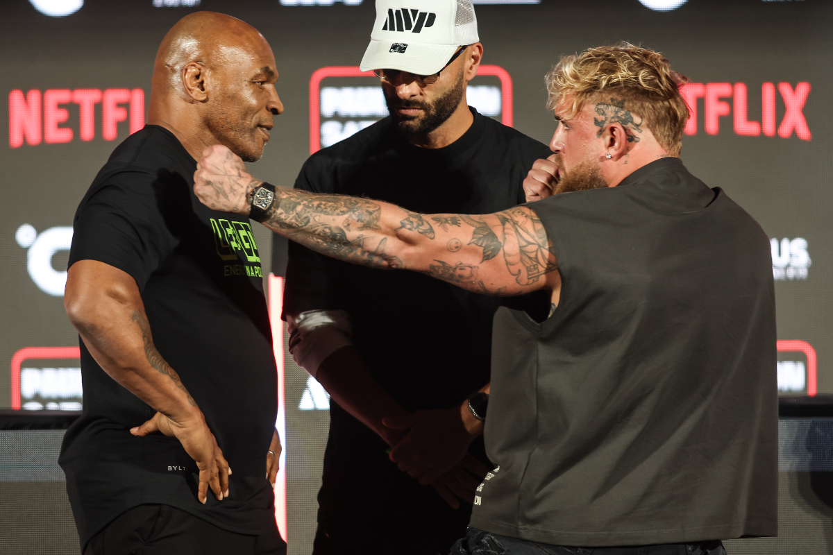 Escalados para medirem forças dentro do ringue de boxe no próximo dia 15 de novembro, no Texas (EUA), Mike Tyson e Jake Paul se estranharam no último domingo (18). Após uma coletiva de imprensa promocional do duelo, realizada em Nova York (EUA), o ex-campeão mundial e o youtuber ficaram frente a frente para a tradicional encarada e acabaram trocando empurrões (veja abaixo ou clique aqui).